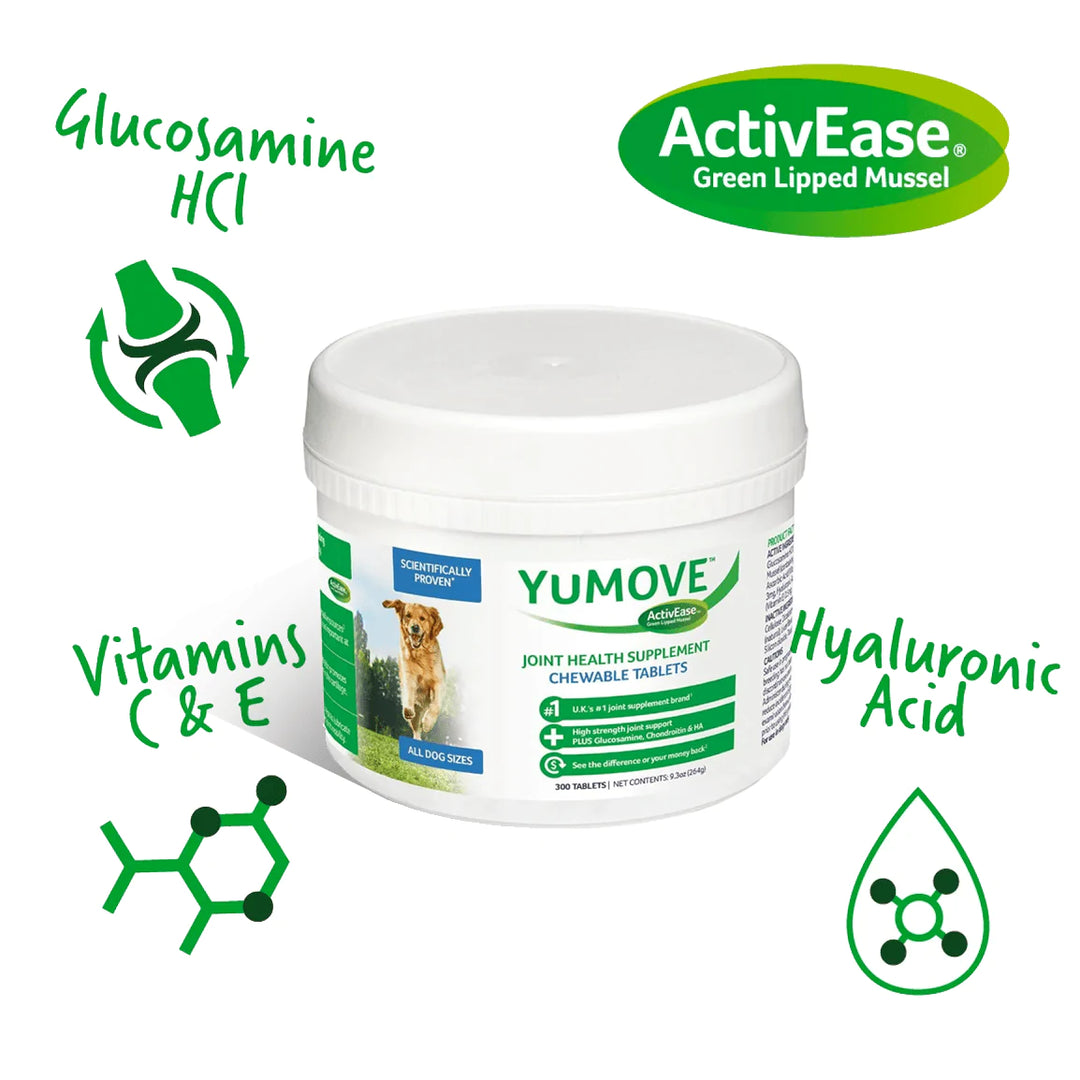 Unique to YuMOVE, ActivEase® Green Lipped Mussel contains a powerful blend of Omega-3s to soothe occasional stiffness and promote mobility. Antioxidants Vitamins C and E, neutralize free radicals to help support joint mobility.