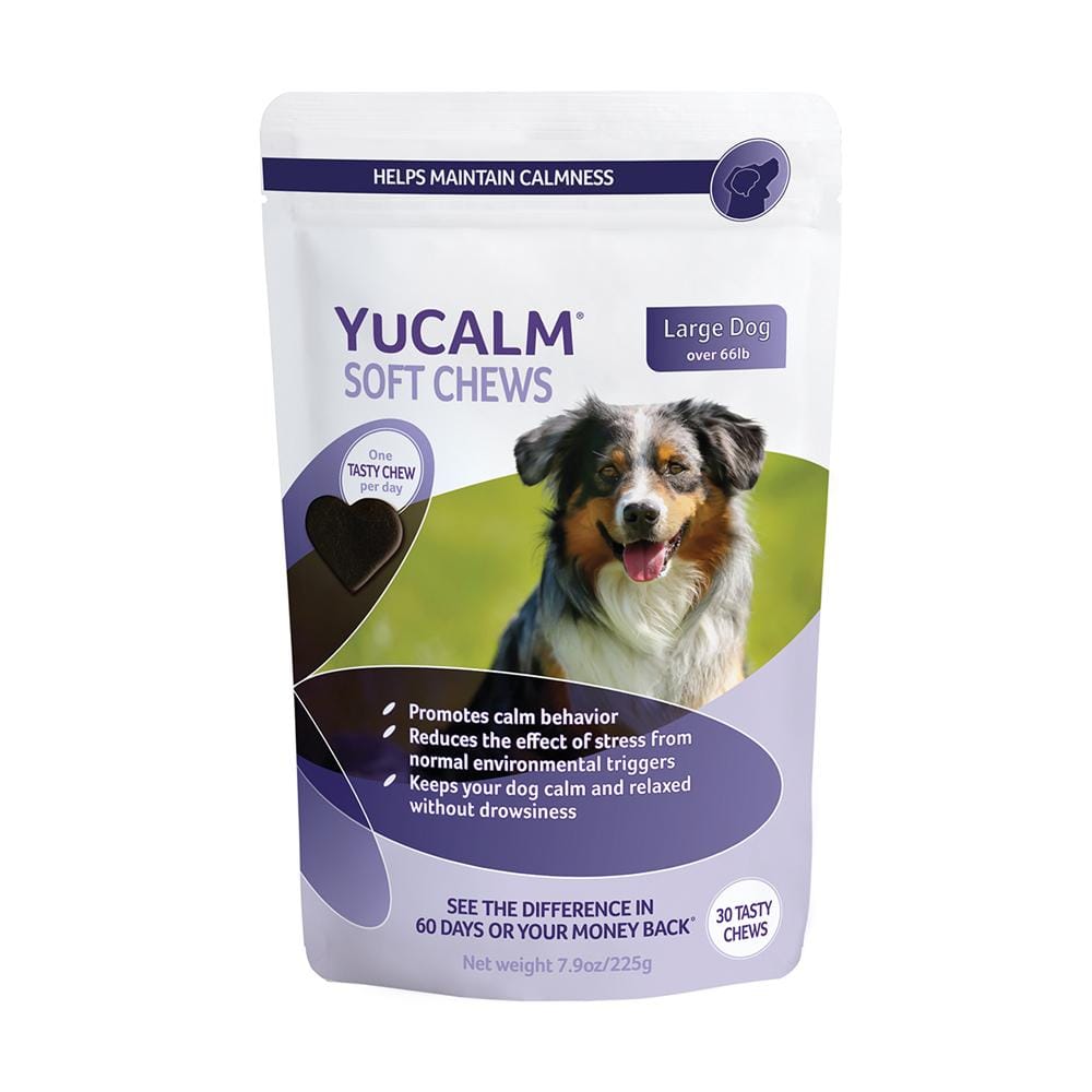 YuCALM Calming Soft Chews help support calm behavior in your dog and promote relaxation, all delivered in a tasty, calming soft chew. This calming supplement has been developed for dogs who are fearful of triggers like fireworks, storms, other dogs, strangers, travel or being left alone. By supporting the natural pathways in the brain, our unique targeted formula has been developed to be given daily to help manage everyday stress and help your dog behave more calmly.